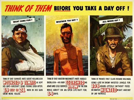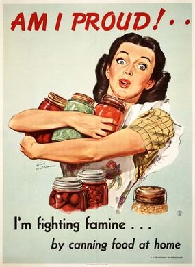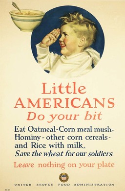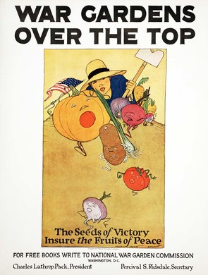 Posters were also used to express views on how citizens should conserve resources that were needed overseas. War Gardens (or Victory Gardens) were among the more visible activities, but even changing the clocks for daylight savings time or choosing corn over wheat for dinner could be said to help the war effort. With over 16 million Americans in uniform during World War II alone, these posters formed a powerful emotional appeal, particularly for those with a friend or family member fighting overseas.