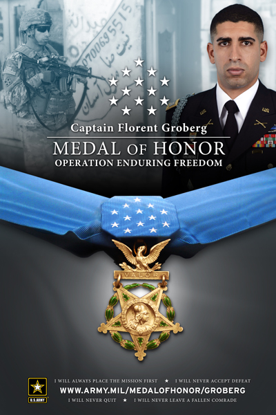 CAPT. FLORENT "FLO" GROBERG, U.S. ARMY (RET.) was born in France and naturalized a U.S. citizen in 2001, graduating from Walter Johnson High School in Bethesda, MD in June of that year. A graduate of the University of Maryland, College Park, where he competed in varsity track and cross country, Groberg entered the Army in July 2008 and attended Officer Candidate School at Fort Benning, Ga. He received his commission as an infantry officer, Dec. 4, 2008.